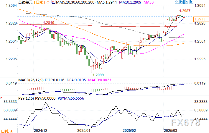 北京时间3月17日11:11 英镑兑美元 报 1.2932/33。
