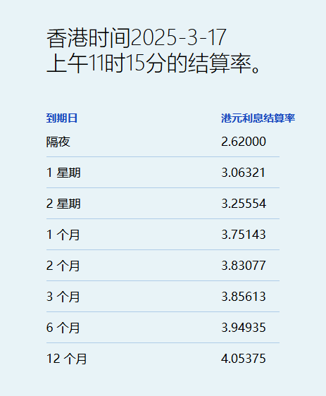 港元隔夜息现近半年新低一个月拆息三连跌后企稳