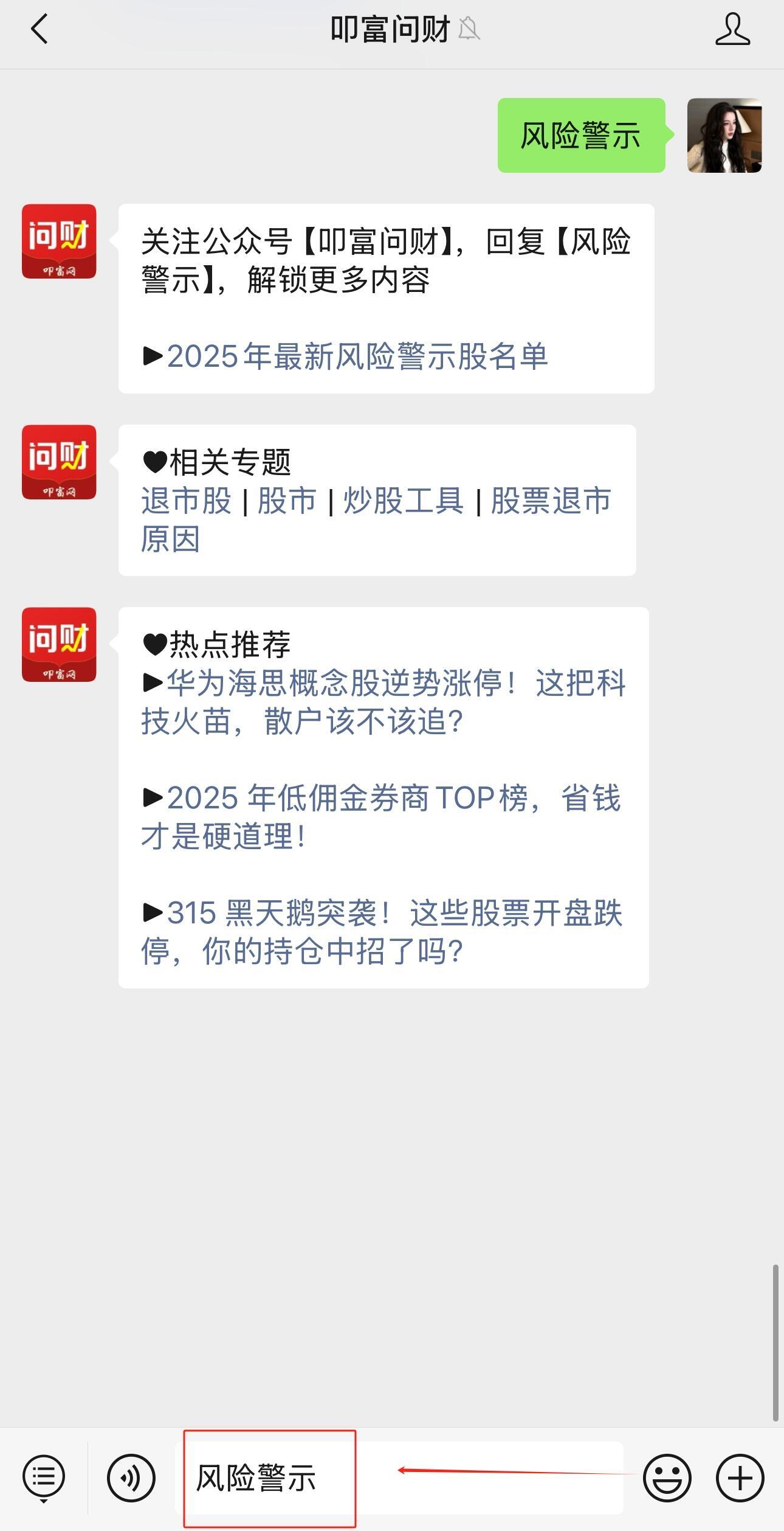 立即关注【叩富问财】公众号,回复"风险警示",免费获取: