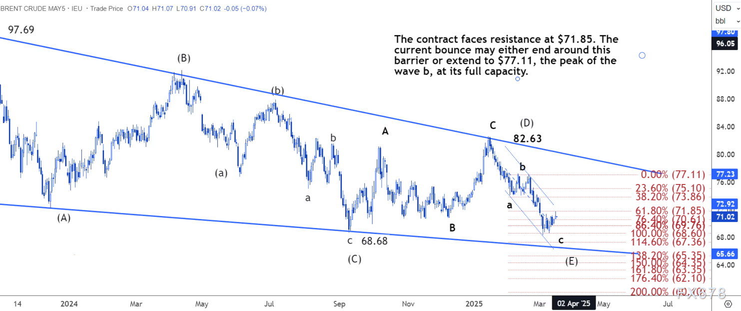 下一步走势的关键主要取决于 71.85 美元附近的市场表现。突破该水平可能会打开通往 73.86 美元至 75.10 美元区间的道路,从而增加进一步上涨至 77.11 美元的机会。