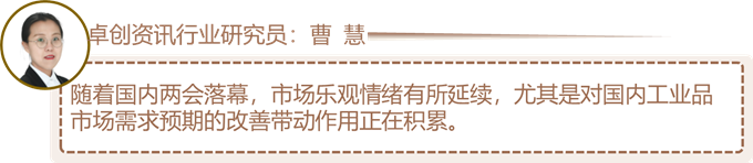 卓创资讯研究员曹慧:随着国内两会落幕,市场乐观情绪有所延续,尤其是对国内工业品市场需求预期的改善带动作用正在积累。
