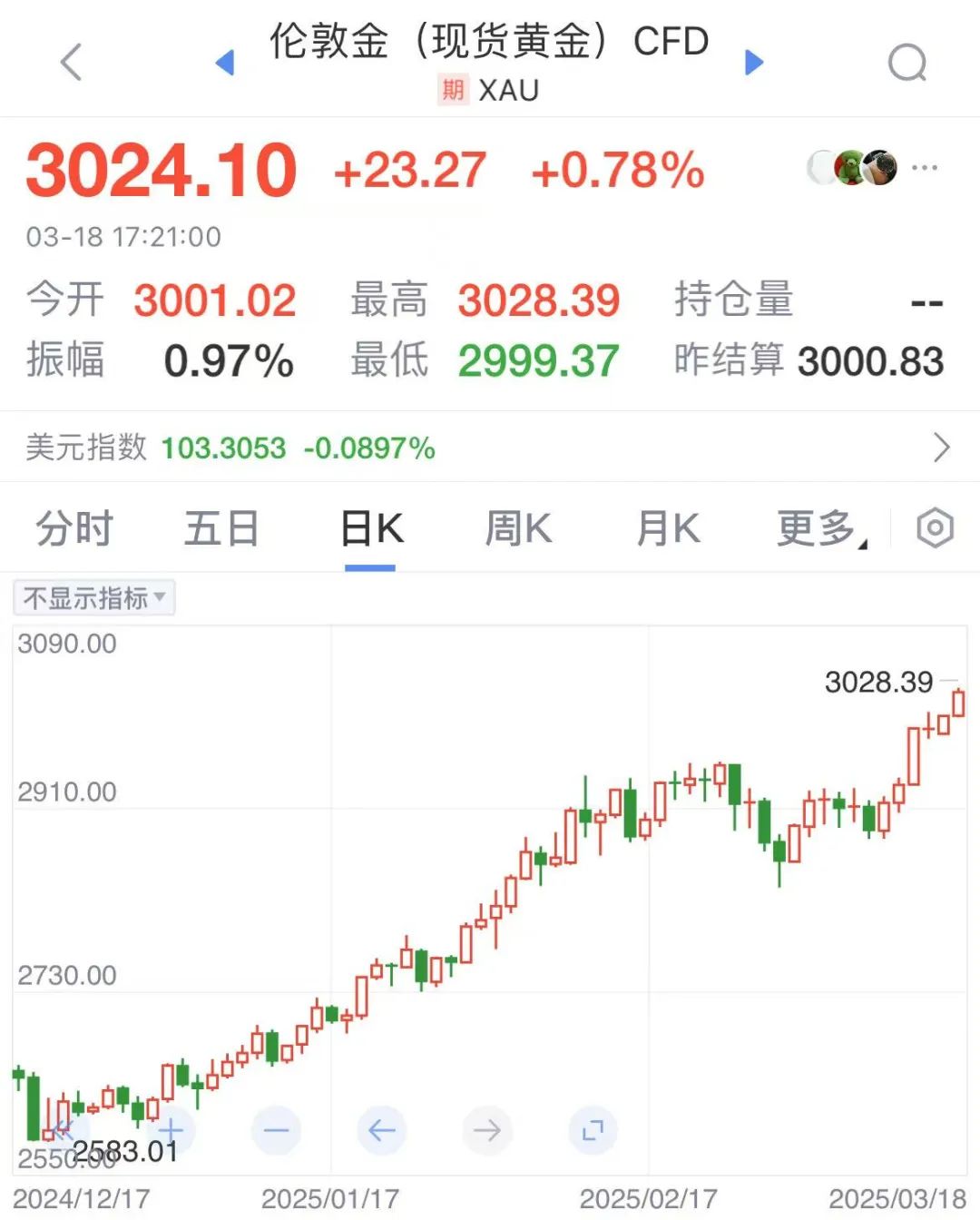3月18日,伦敦金价格盘中高点3028.39美元/盎司,刷新历史纪录。避险需求、储备需求及配置需求均形成强利好,政策宽松利好影响持续,短期或难以出现大幅调整行情。
