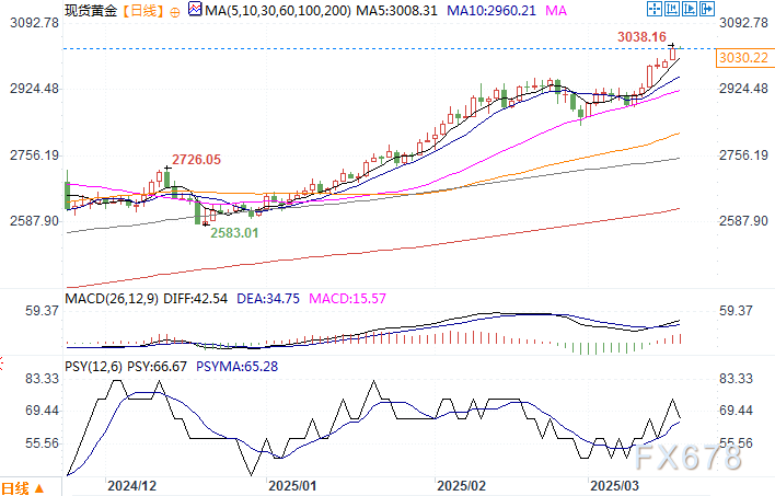 北京时间3月19日10:38 现货黄金 报 3031.9美元/盎司