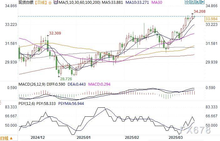 这一看涨前景出炉之际,现货银价测试并突破了每盎司34美元的阻力位,当日(3月18日)触及34.208美元的五个月高点。
