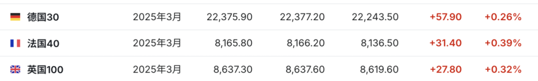 另外,欧洲股市主要股指期货小幅走高,其中,德国DAX30指数期货上涨0.26%。