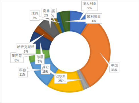 图3:锌矿产量分国别分布(2024年产量数据)