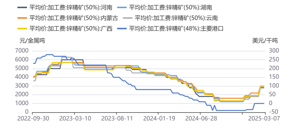 2024年第四季度以来,锌加工费止跌,2025年以来,锌加工费显著回升。显现出矿端供应的显著改善。