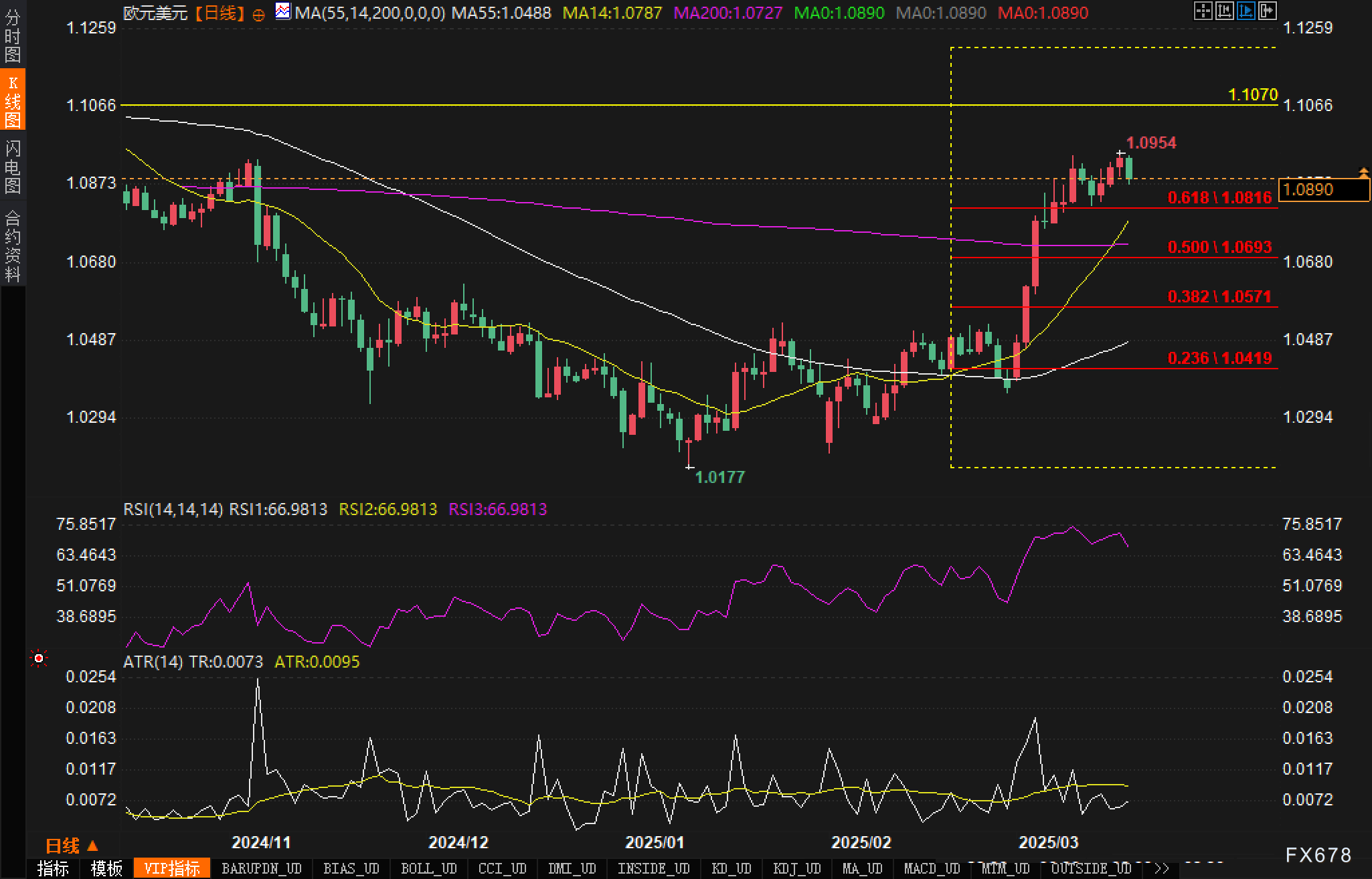 整体而言,目前欧元/美元短线仍处于多头趋势之中,但短期上行动能有所减弱,1.0954上方阻力的有效突破尚需更多消息面的配合。若市场继续观望美联储政策,汇价可能在区间内震荡。
