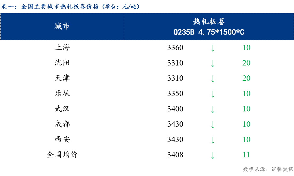 主要城市价格为上海3360元/吨,沈阳3310元/吨,天津3310元/吨,乐从3350元/吨,武汉3400元/吨,成都3430元/吨,西安3430元/吨。