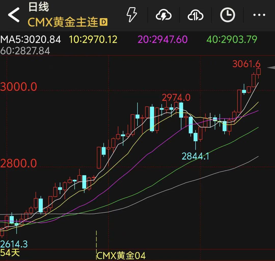 3月19日,COMEX黄金期货主力合约盘中触及3061.6美元/盎司,创历史新高。