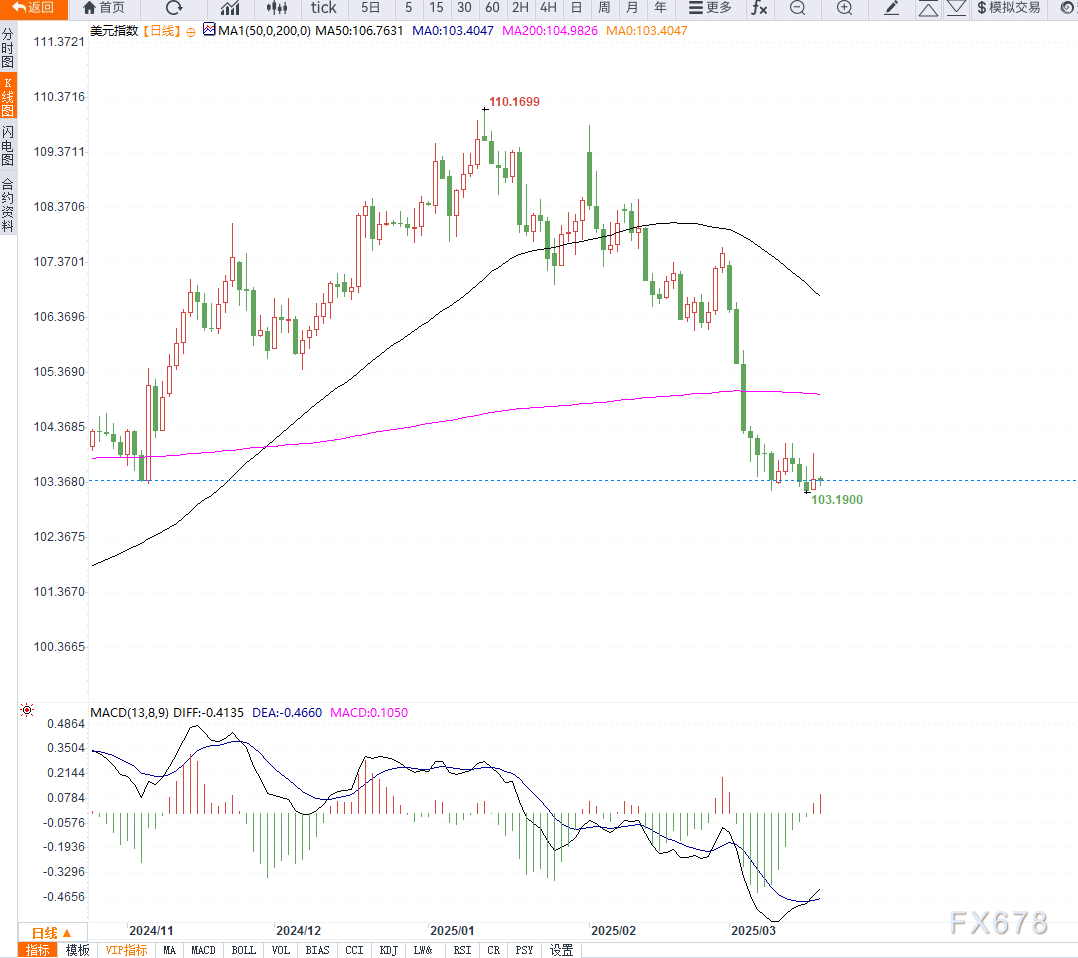 美元因此在周四早盘走软,美元指数稳定在103.41,接近本周初创下的五个月低点。市场普遍认为,美联储此举反映了对贸易担忧情绪可能引发的经济不确定性的审慎应对。