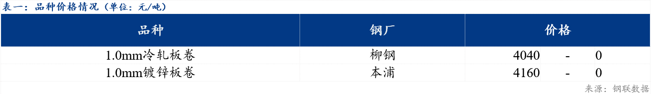 今日市场冷轧板卷主流资源价格4040元/吨,较上一交易日持平;镀锌板卷主流资源价格4160元/吨,较上一交易日持平。