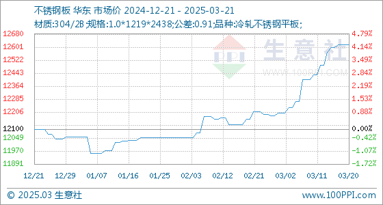 3月21日生意社不锈钢板基准价为12614.29元/吨