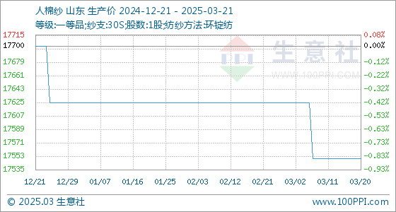 3月21日生意社人棉纱基准价为17550.00元/吨