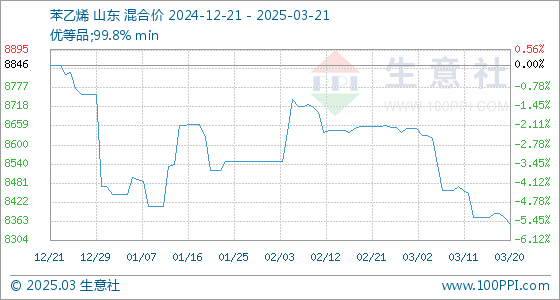 3月21日生意社苯乙烯基准价为8354.00元/吨