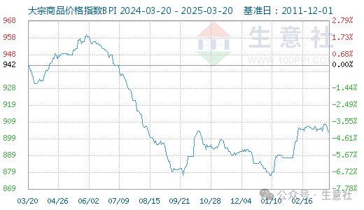 3月20日大宗商品价格指数BPI为902点,较昨日下降了132.84%36.67%