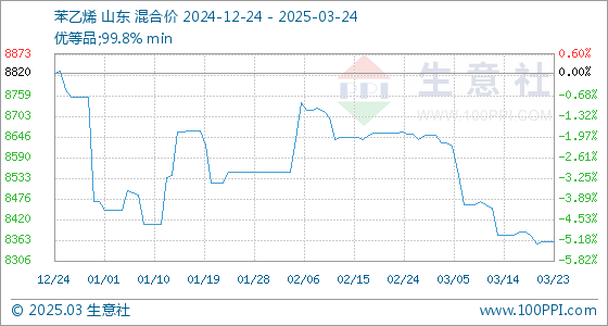 3月24日生意社苯乙烯基准价为8360.00元/吨