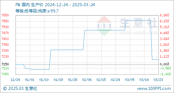 3月24日生意社PX基准价为7200.00元/吨