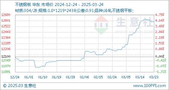 3月24日生意社不锈钢板基准价为12585.71元/吨