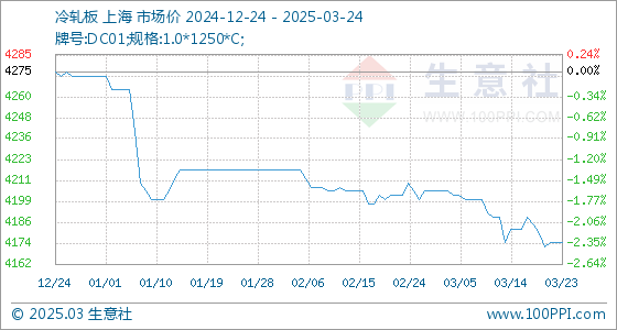 3月24日生意社冷轧板基准价为4175.00元/吨