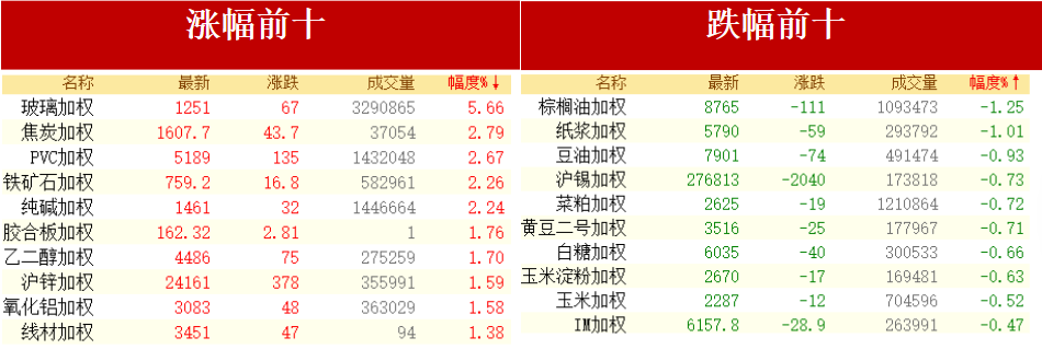 【每日收评】玻璃涨超6%焦炭等涨超2%