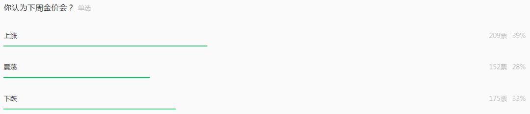 3月17日当周,伦敦金价格开盘2987.6美元/盎司,最高3057.28美元/盎司,最低2982.16美元/盎司,收盘3023.49美元/盎司。北京黄金经济发展研究中心调查显示,市场人士认为本周国际金价高位震荡可能性较大。投票显示,有39%的读者看涨本周金价、28%看震荡、33%看空。