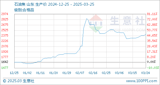 3月25日,生意社石油焦基准价为2420.00元/吨,与本月初(2545.00元/吨)相比,下降了-4.91%。