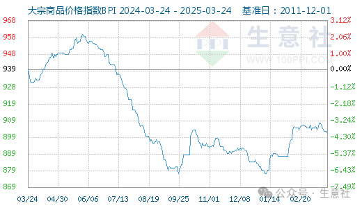 3月24日大宗商品价格指数BPI为901点,较昨日下降了132.91%36.52%