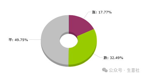 环比下降的商品共64种,集中在化工(共30种)和有色(共8种),跌幅前3的商品分别为豆粕(-3.72%)、MTBE(-3.49%)、液氨(-2.81%)。