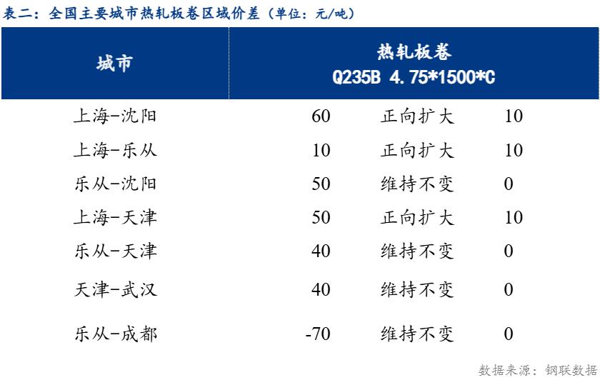 从区域价差来看,华东与东北价差60元/吨,较上一交易日正向扩大10元/吨;华东与华南价差10元/吨,较上一交易日反向扩大10元/吨;华南与华北价差40元/吨,较上一交易日维持不变。