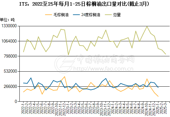 (2)船货检验机构ITS发布的数据显示,马来西亚3月1-20日棕榈油产品出口量为63万吨,环比下滑14.2%。
