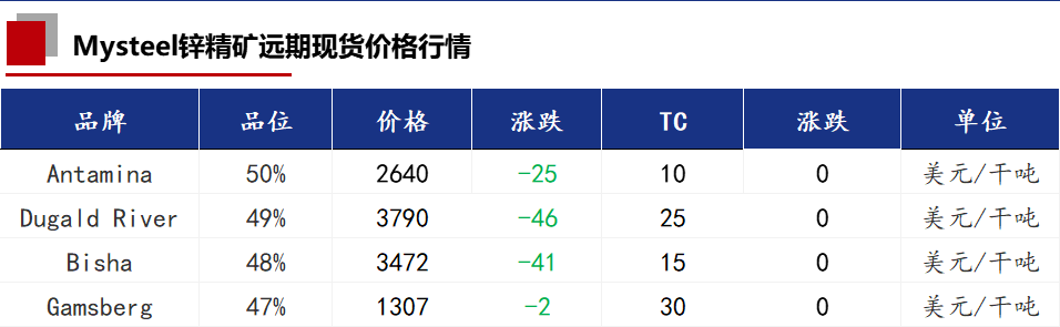 华南地区:广东某锌精矿贸易商50品位锌精矿加工费3000-3200元/金属吨到厂。