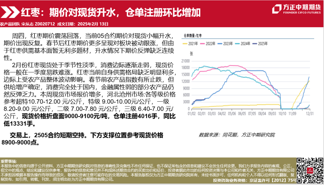 红枣:期价对现货升水,仓单注册环比增加