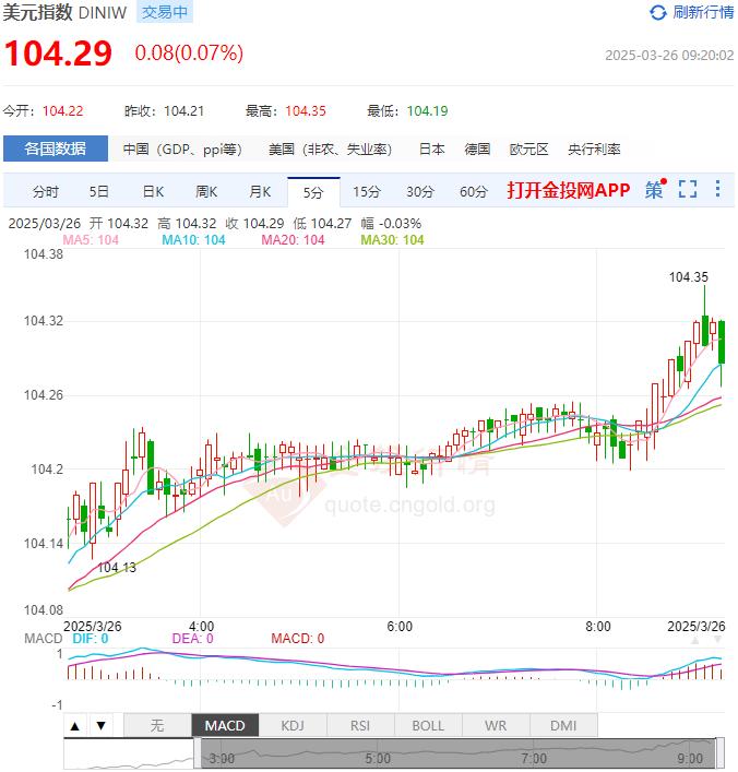北京时间周三(3月26日)亚盘开盘,美元指数交投于104.28附近,主要非美货币对美元涨跌不一,欧元/美元交投于1.0787附近,英镑/美元徘徊在1.2934附近,澳元/美元徘徊在0.6294附近,美元/加元徘徊在1.4286附近,美元/日元暂处150.14附近。今日基本面关注17:00 瑞士3月ZEW投资者信心指数。