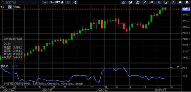 导语:3月13日,COMEX黄金期货突破3000美元一线,最高点3065.2美元。3月19日美联储公布利率决议,利率目标区间维持在4.25%至 4.50%之间。美国滞胀预期再起,美联储维持利率不变,下调增长预期及提高通胀预期,对黄金形成利多因素。