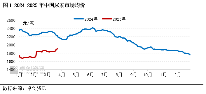 【导语】2025年一季度国内尿素市场呈现震荡上行走势,需求向好支撑价格上扬。供应端随着气头检修装置恢复及新增产能投产,日产始终维持高位水平。需求端进入春耕阶段,下游工农业需求支撑增强,助推价格上涨。二季度仍处春耕用肥阶段,新增产能存投产预期,在下游阶段性备肥跟进情况下,市场或呈现先扬后抑走势。