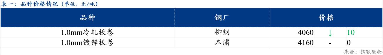 冷轧方面,期货热卷窄幅震荡运行,市场价格以稳为主,目前市场主流资源成交1.0mm成交多集中在4070元/吨。据悉,目前市场需求仍处在缓慢恢复阶段,整体下游用量并未出现较大增量,因此商家多暂稳出货为主。镀锌方面,今日期货热卷盘面小幅上涨,现货市场价格多持稳运行,商家还是以出货降库为主,但市场整体成交表现一般。市场价格波动小,中间商投机则没有任何空间,因此活跃度降低。整体来看,预计明日乐从市场冷轧及镀锌板卷价格或将以稳为主。