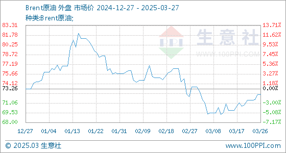 3月27日生意社Brent原油基准价为72.39美元/桶