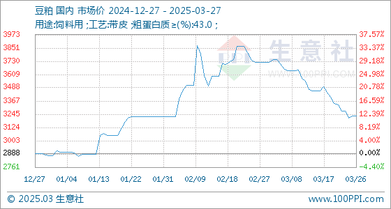 3月27日生意社豆粕基准价为3230.00元/吨