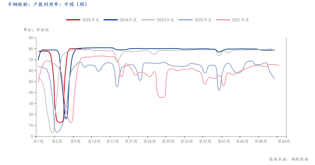 (2)需求端:本周半钢轮胎开工逐步恢复,产能利用率79.27%,环比增0.18%;全钢轮胎产能利用率68.9%,同比下滑0.09%,整体产能利用率小幅提升。