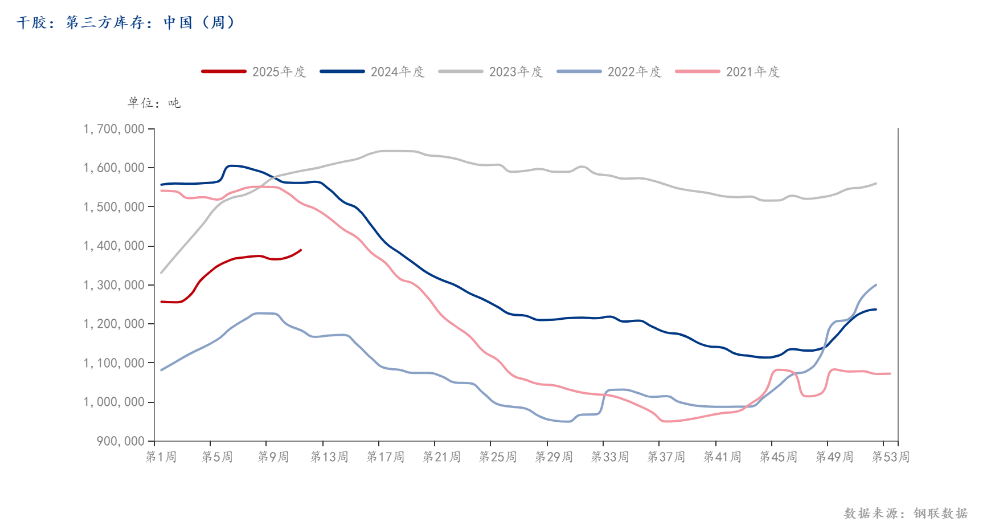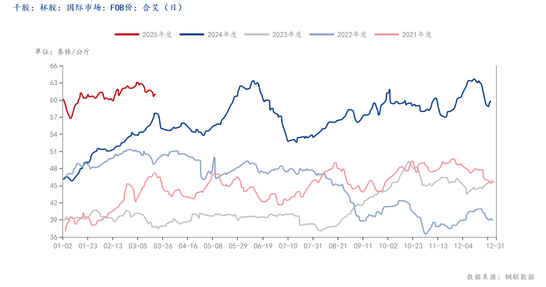 (1) 供应端,据海关数据统计,2月我国天然橡胶进口量50.32万吨,环比减少14.5%。1-2月累计进口数109.16万吨,累计同比增19.17%。泰国南部产出持续缩量,东南亚主产区近全面停割。海外供应整体维持偏紧,原料价格仍在高位,成本支撑仍存。