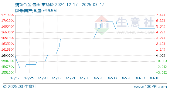 3月17日生意社镝铁合金基准价为1680000.00元/吨