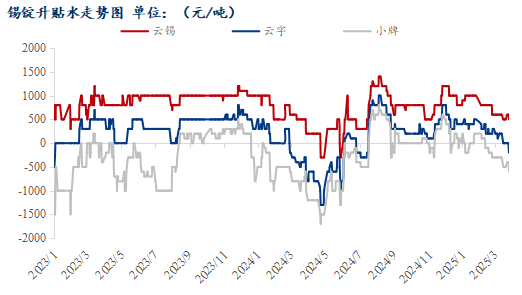 今日套盘商对沪锡2504合约套盘云锡升水500元/吨左右,普通云字贴水200元/吨至平水;小牌贴水600元/吨左右,进口锡贴水900元/吨左右。