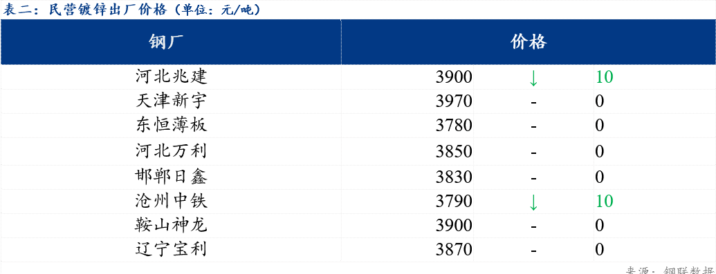 今日北方民营钢厂镀锌出厂指导价在3780元/吨-3970元/吨。