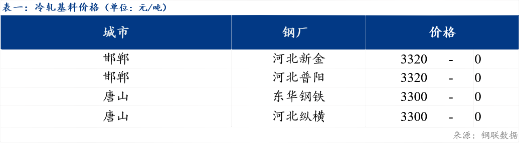 今日北方市场冷轧基料3.0*1010*CSPHC河北普阳价格为3320元/吨,较上一期价格持稳,河北纵横价格为3300元/吨,较上一期价格持稳。镀锌方面,今日北方市场民营钢厂价格部分下跌10元/吨。轧硬方面,当前主流报价3565-3630元/吨。市场方面,镀锌成交氛围清冷,大部分民营资源钢厂结算价格较上月相比下跌,成本端支撑减弱。