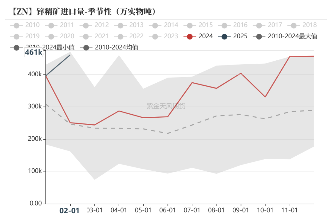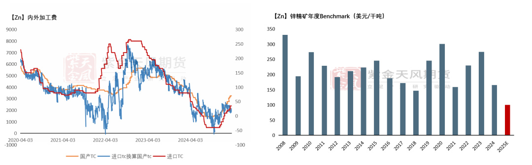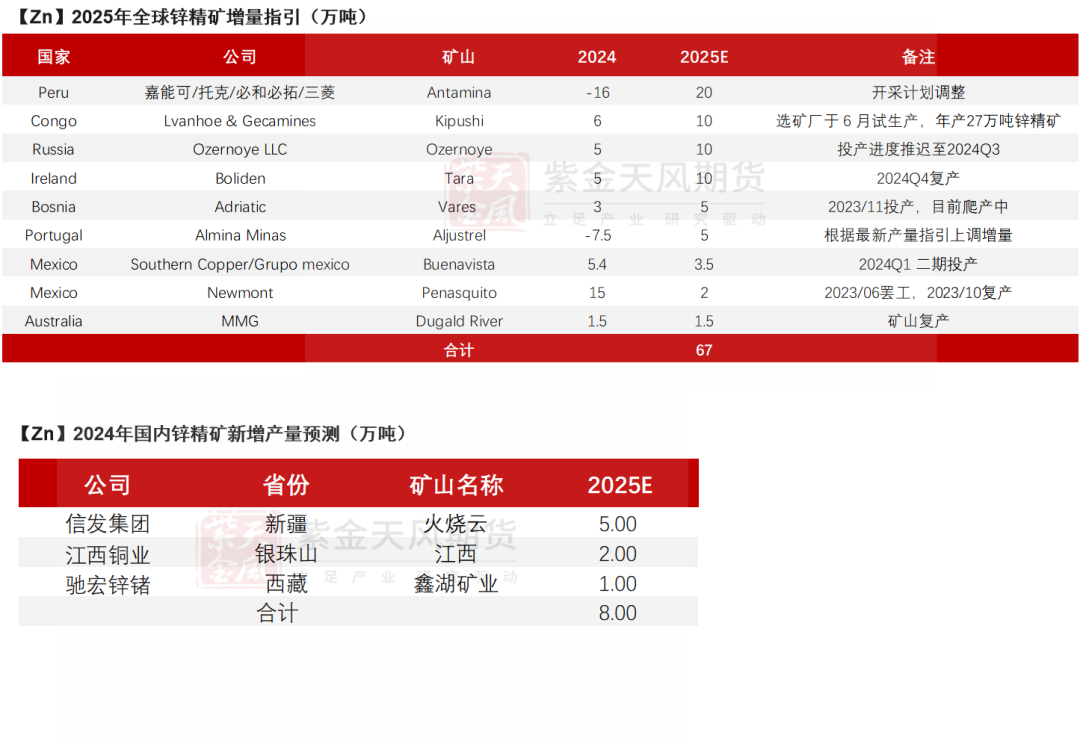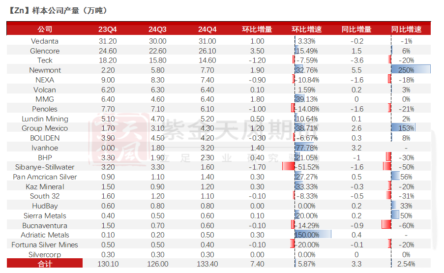 25年矿端增量预计较为可观,但传导至冶炼端仍存在一定瓶颈,全年锌锭复产最终增量相对有限;