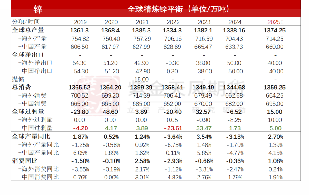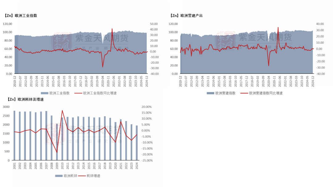 预计2025年欧洲整体锌锭需求同比24年小幅下滑1.2%。