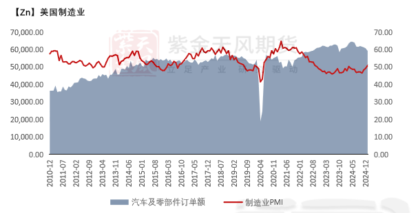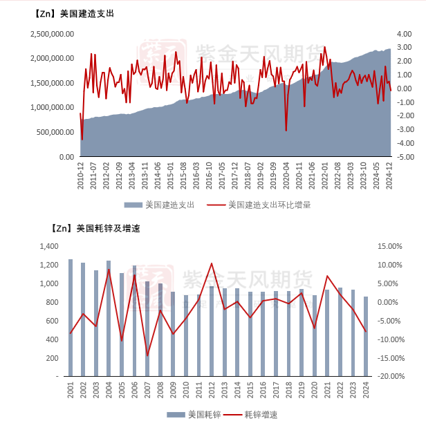 预计2025年美国整体锌锭需求同比24年增长1.6%。