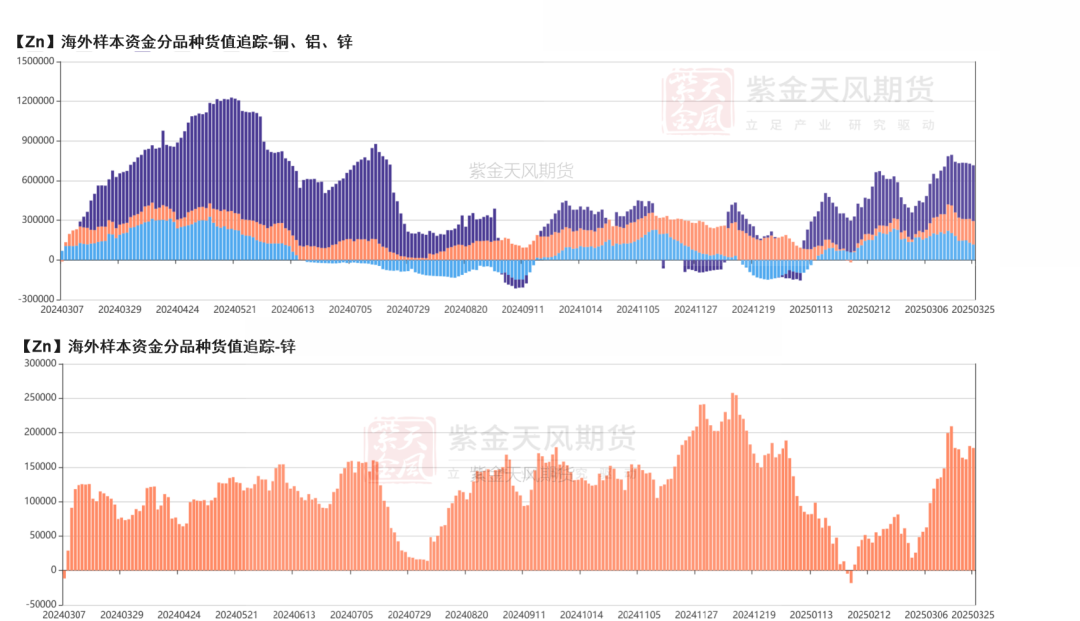 尽管锌在有色中相对弱势,但整体表现或优于预期,不建议作为空配的首选,需更多关注月差/比值的交易机会。