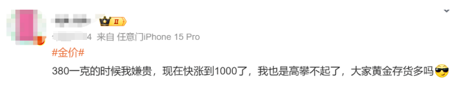 有网友称,“现在的金价已经超出理解的范围了。”